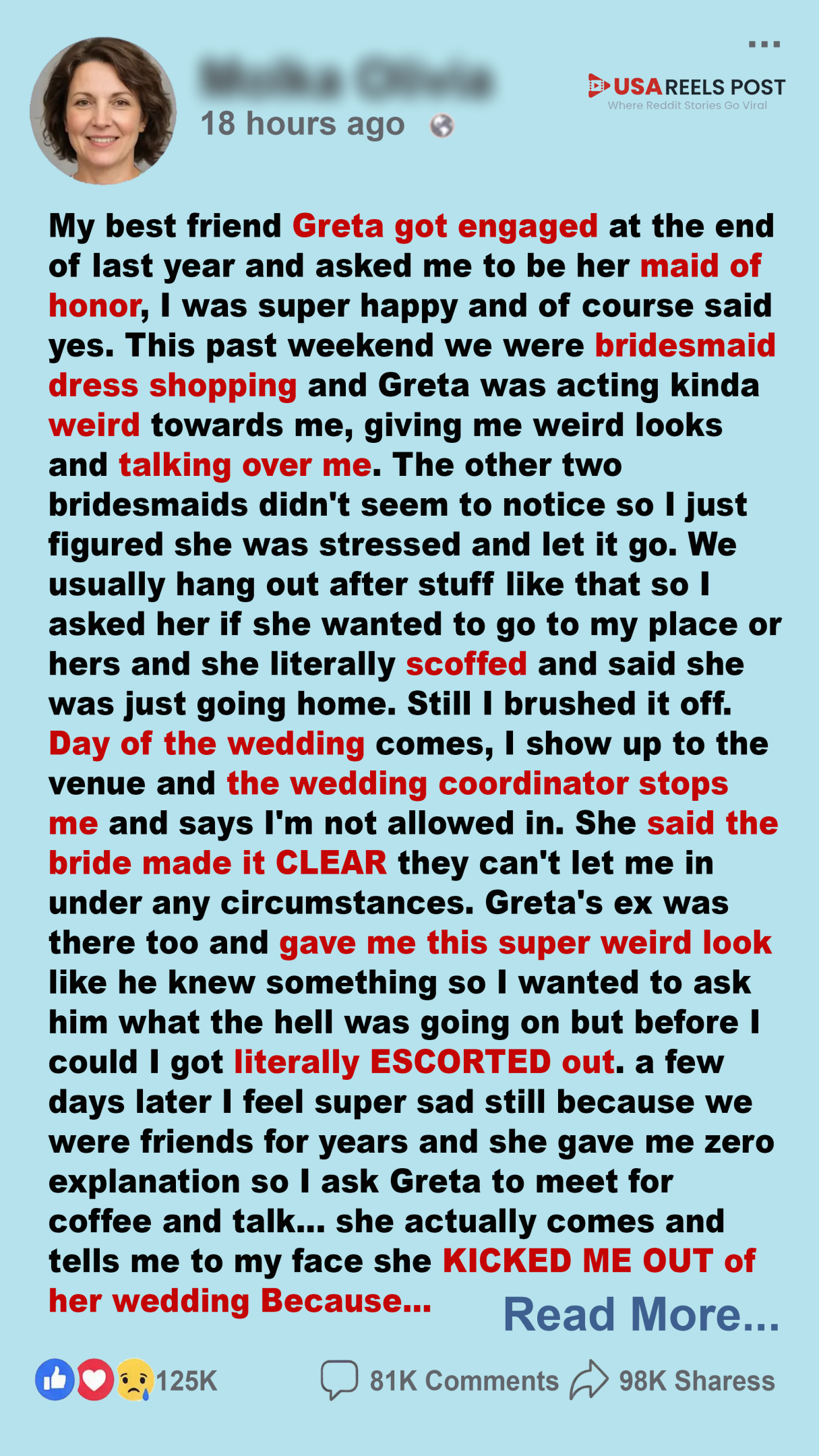 Lila was thrilled to be maid of honor — until the dress fitting, when Greta turned cold. A scoff, a strange silence, then the unthinkable: barred from the wedding with no explanation. Humiliated and heartbroken, Lila digs for the truth and uncovers something shocking.
