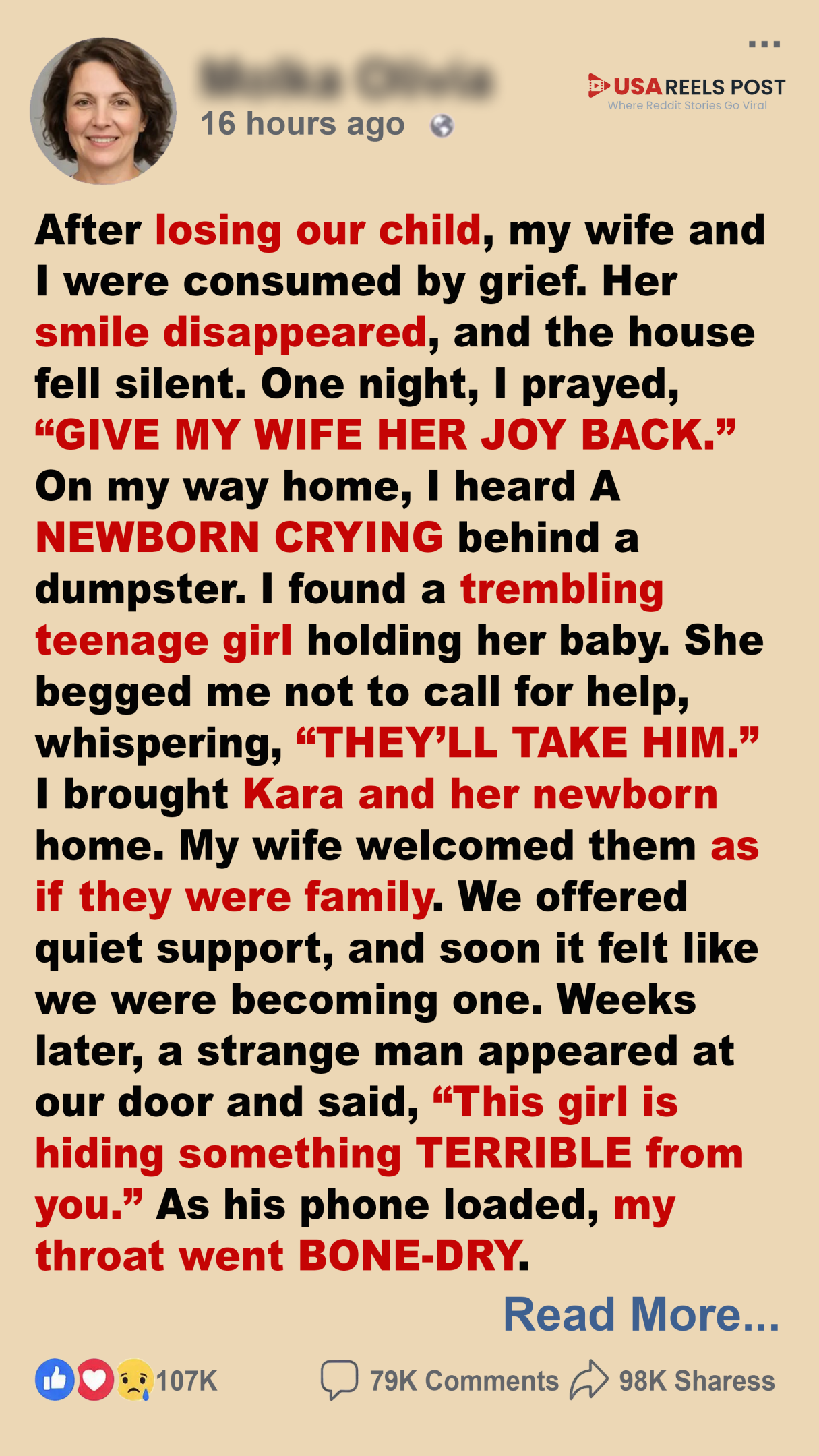 I wasn’t just bringing strangers into my house. I was bringing a baby into the home where my wife still slept with one hand on her stomach some nights, like her body hadn’t accepted the truth yet.