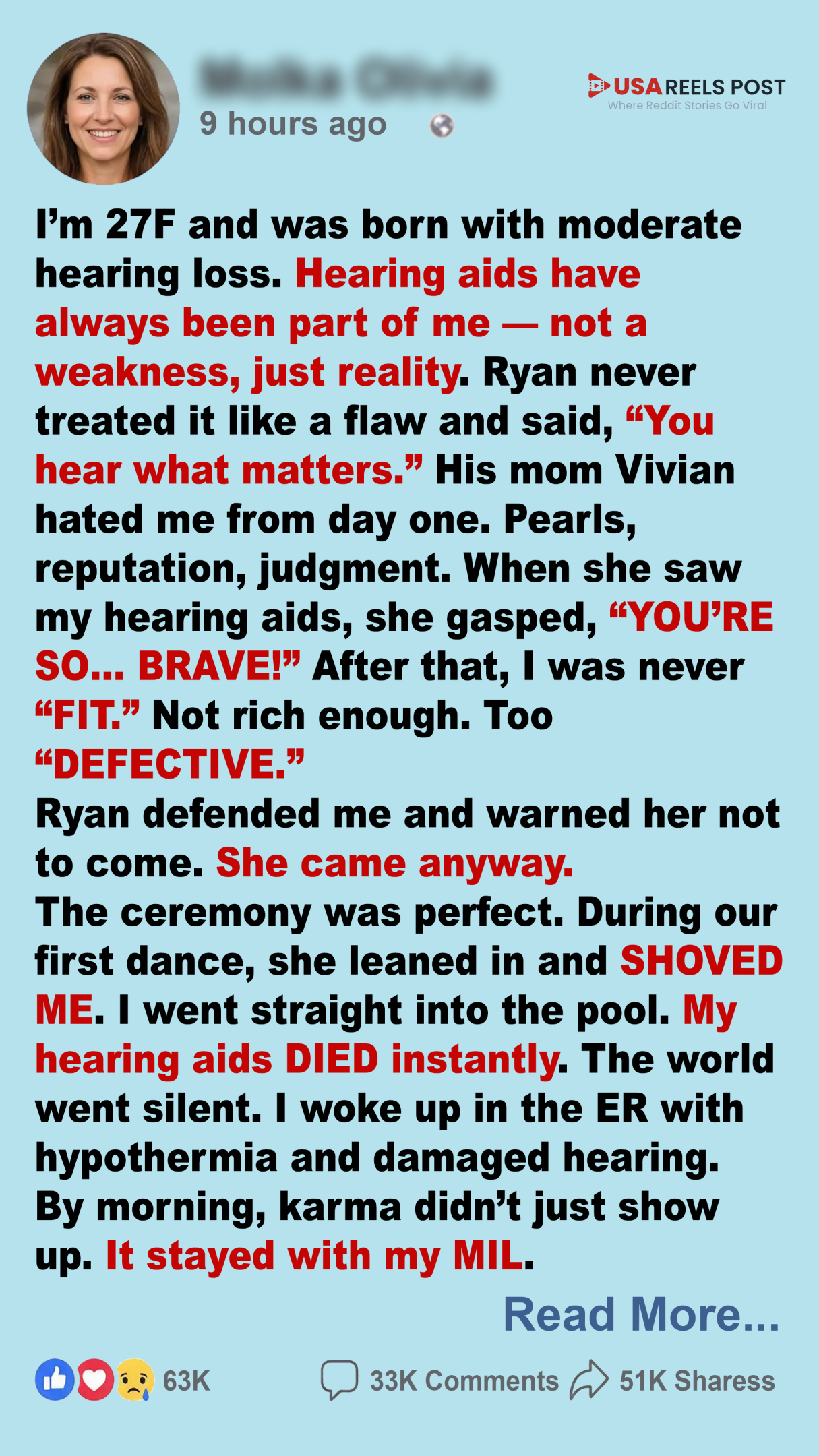 The ride to the hospital was a blur. I couldn’t hear the EMTs. I just stared at the ceiling of the ambulance, soaked and shaking, while Ryan held my hand the entire way. My body trembled from the cold, but the panic had settled deeper. Not just fear, but grief. I already knew my hearing was worse. I could feel it in the silence.
