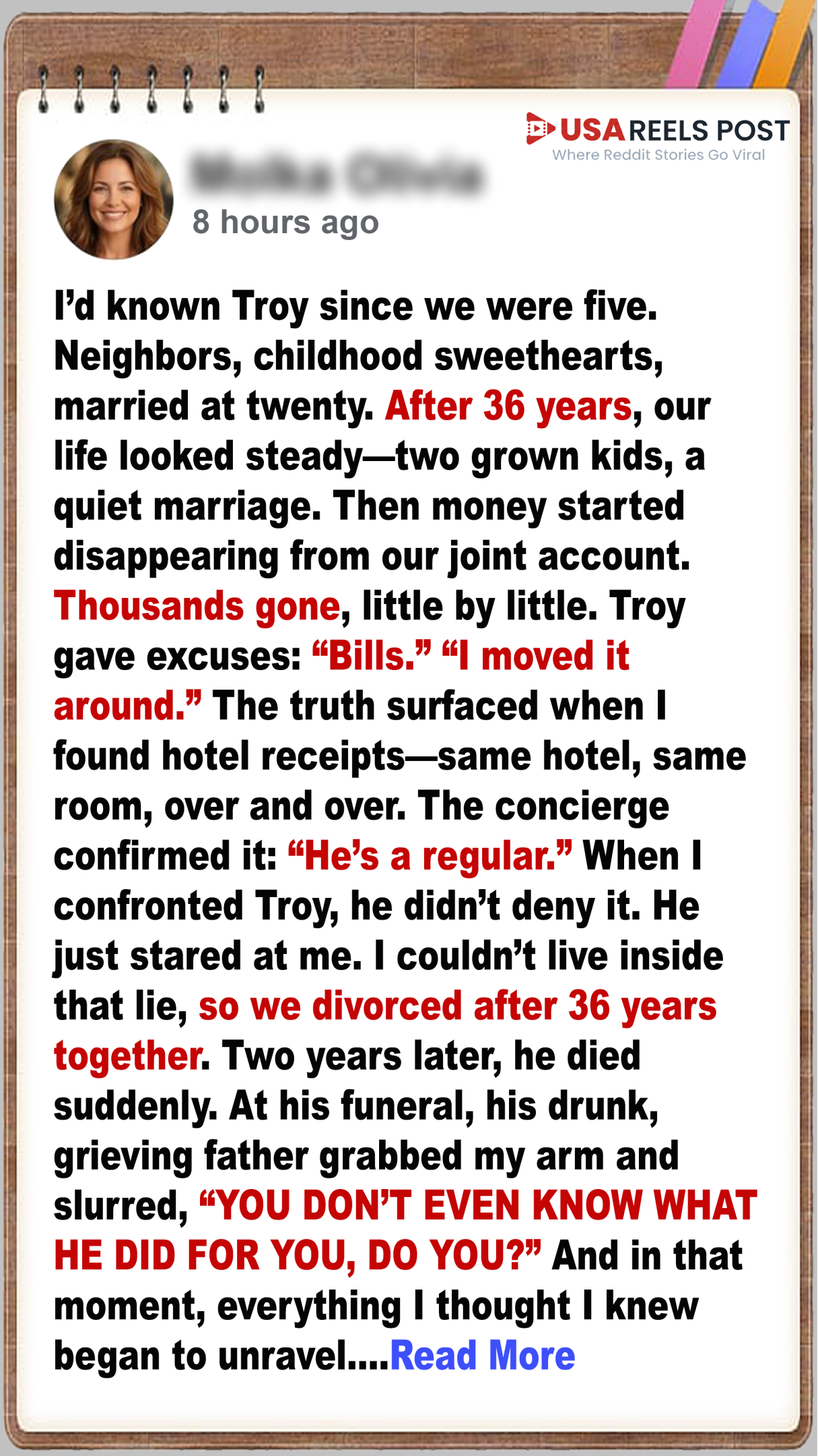 I ended my 36-year marriage after I discovered secret hotel rooms and thousands of dollars missing from our account — and my husband refused to explain himself. I thought I’d made peace with that decision. Then, at his funeral, his father got drunk and told me I had it all wrong.