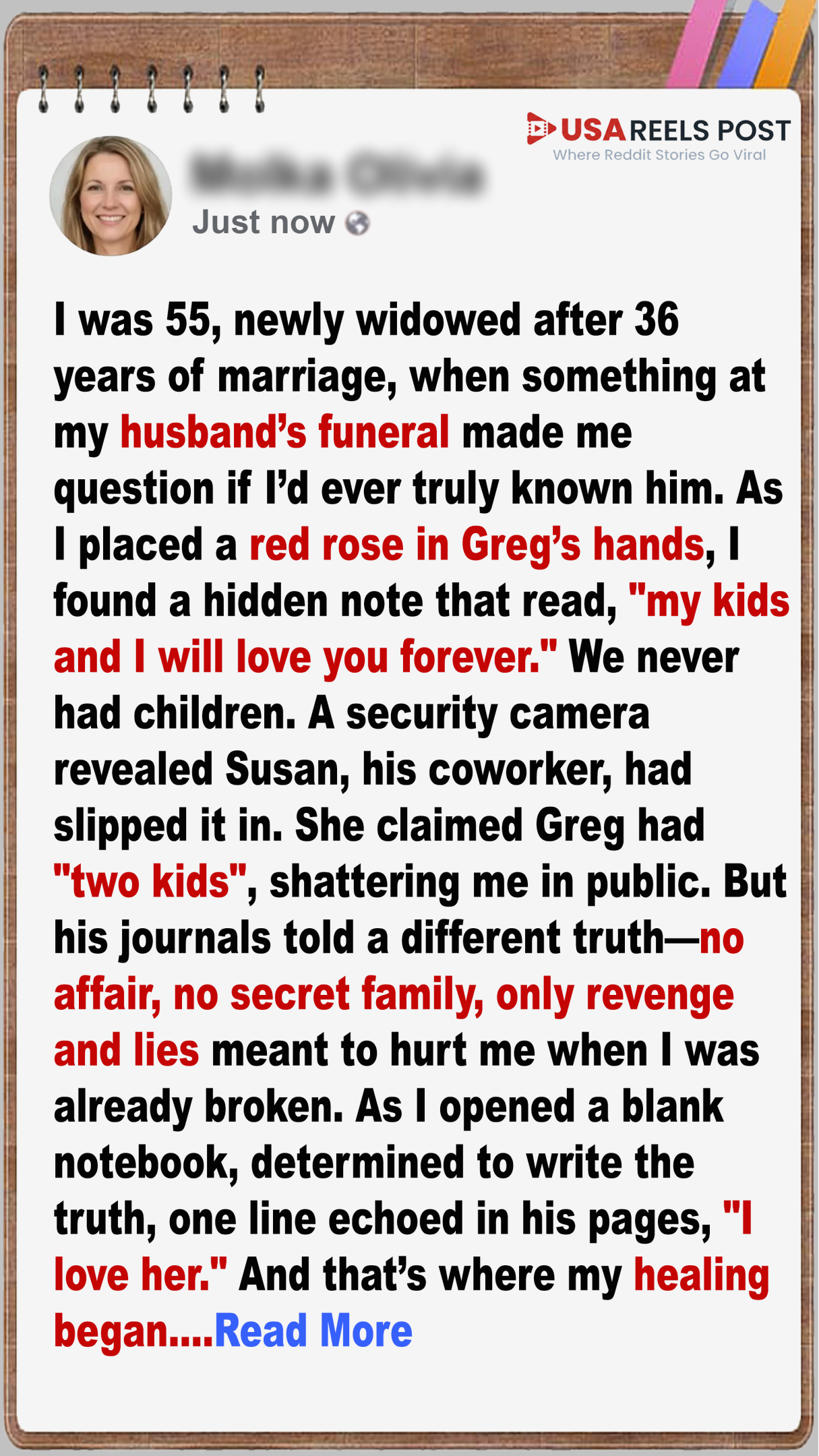 I was 55 years old, newly widowed after 36 years of marriage, when something I found at my husband’s funeral made me question whether I’d ever really known the man I loved.