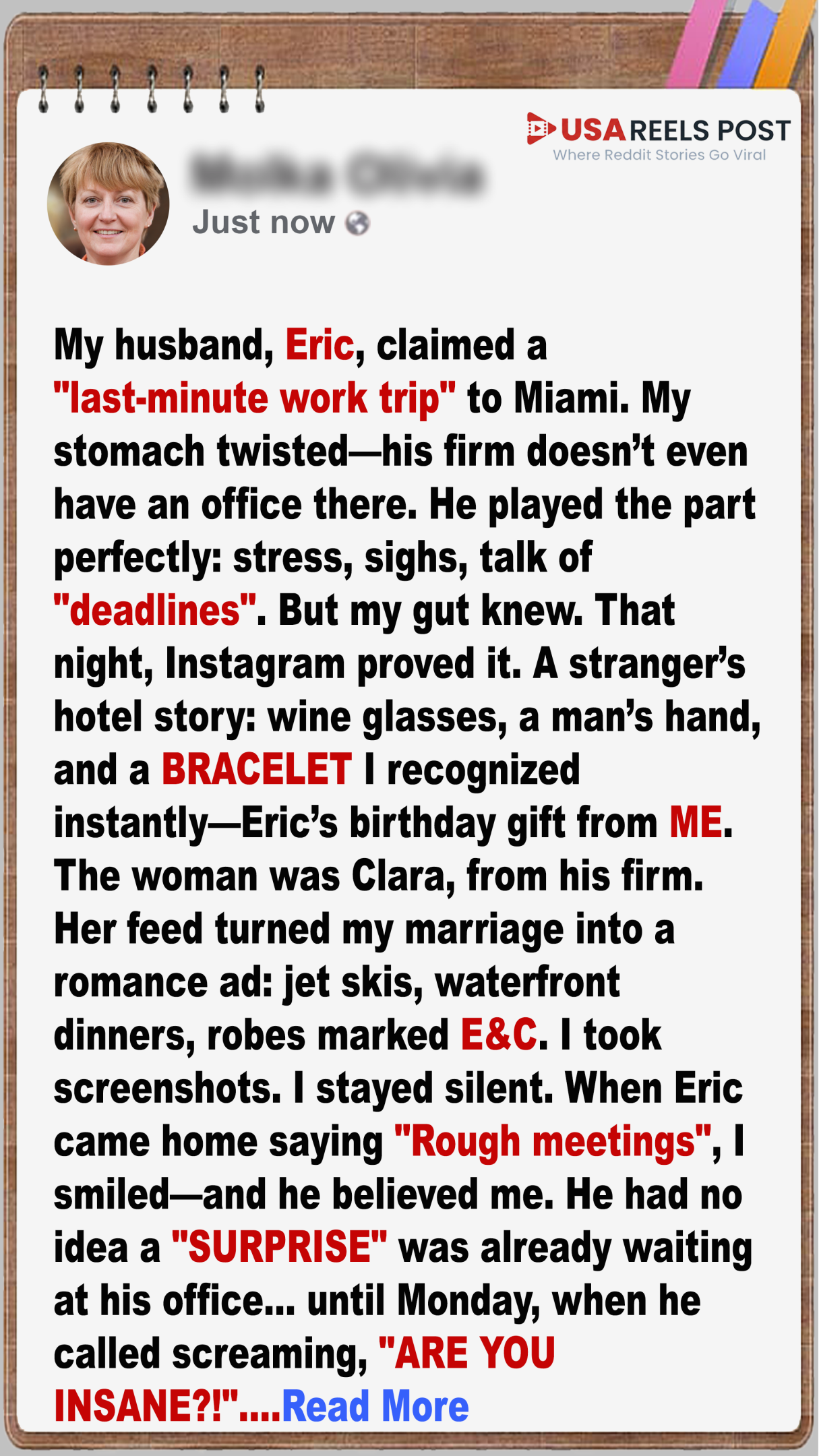 I didn’t call him. I didn’t text. I didn’t even confront him. Instead, I printed out everything and placed it in a neat blue folder labeled: “Business Expenses: Miami.”