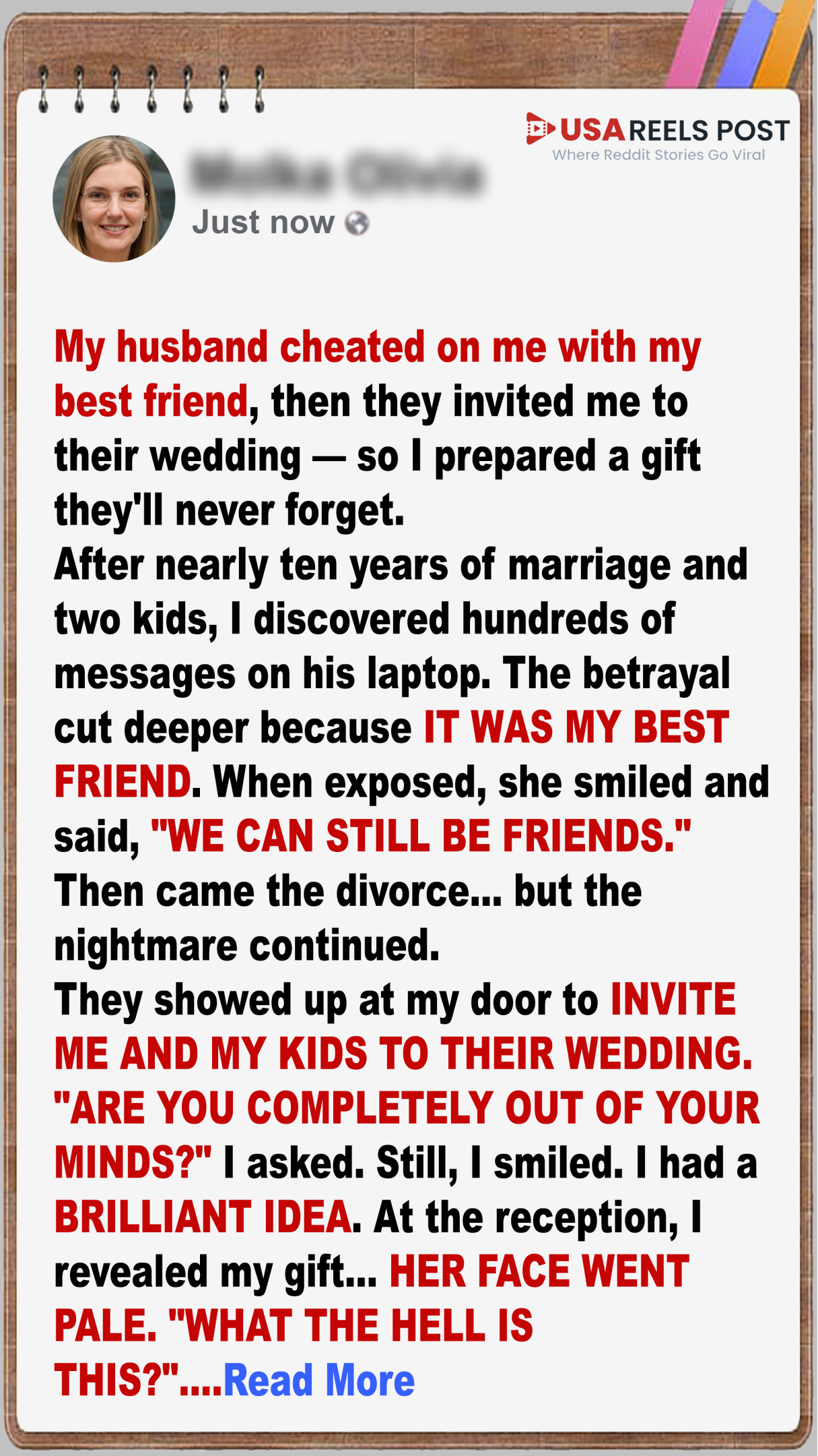 When Sarah is invited to the wedding of her ex-husband and ex-best friend, she chooses grace over chaos, or so it seems. In a story about betrayal, resilience, and the power of quiet truth, one woman brings a gift that no one saw coming… and no one will ever forget.
