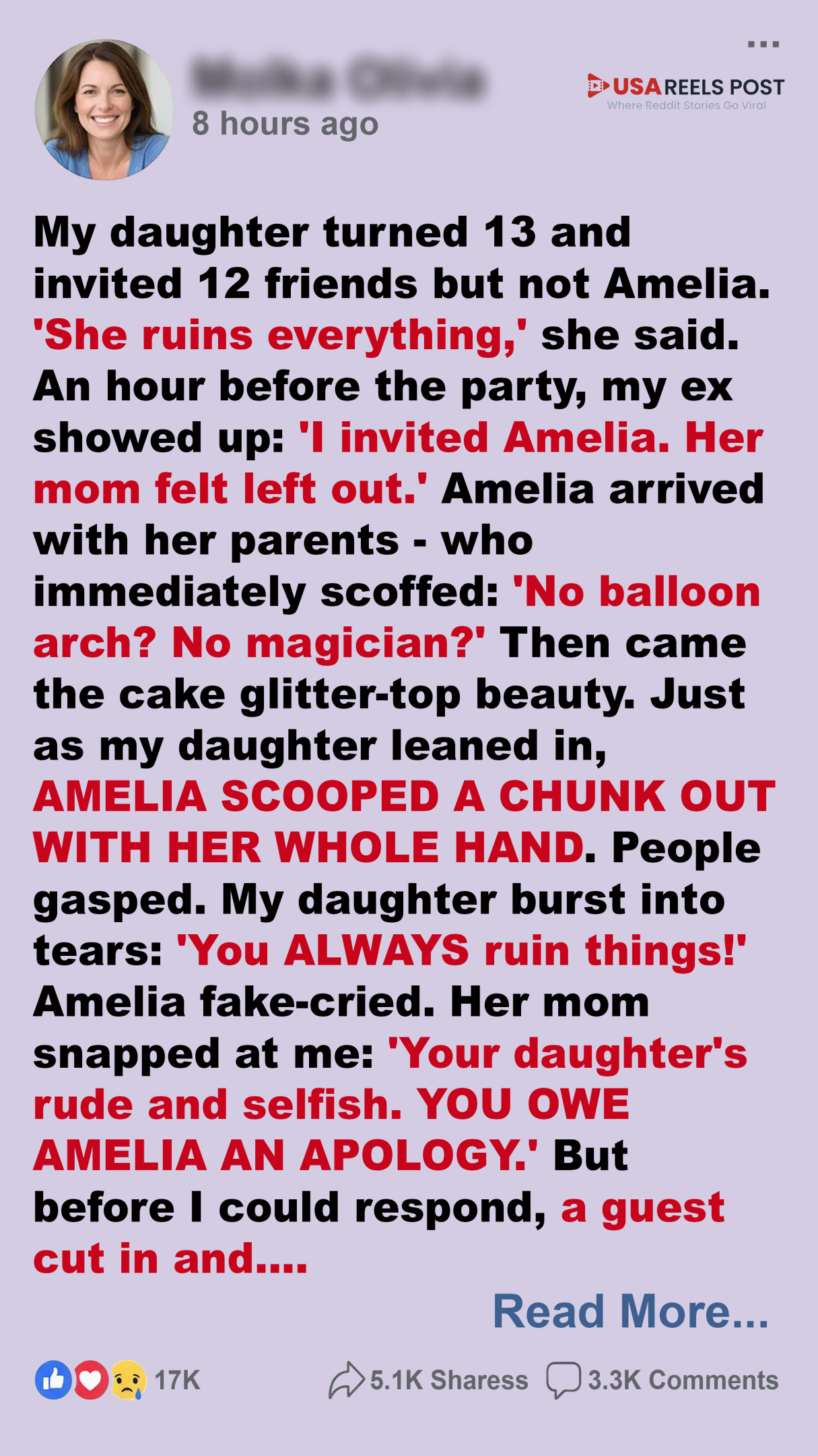 As I tucked Lily into bed that night, she hugged me tight. “Thank you for fixing my birthday, Mom. And thank you for not making me invite Amelia in the first place. I knew she would ruin it.”